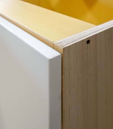 The structure of the cabinet is made with a full 5/8 inch for all panels of the box. Other cabinets may skimp on plywood panels in size or material when they not visible in appearance, but all panels of the premium plywood box are full thick panels, meant to be sturdy and meant to last.